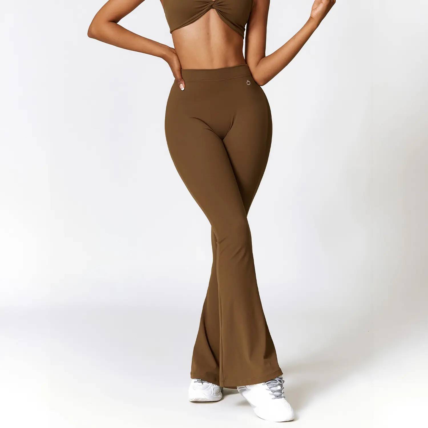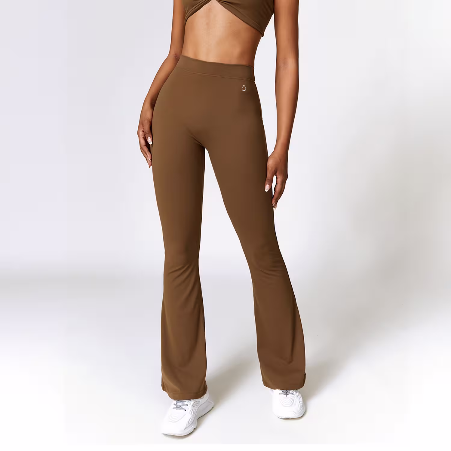 The flare design adds a refined, elongated look, while the structured high-waist enhances the silhouette with precision. Its mocha tone is neutral, versatile, and perfect for a clean, premium aesthetic.